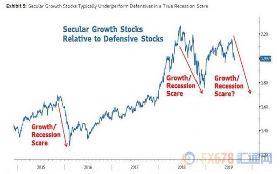 在这一点上,摩根士丹利(Morgan Stanley)上周发布了一份图表,显示如果经济衰退的价格能够完全反映出来,成长型股票在最后的表现如何逊于避险类股。换句话说,尽管避险性债券代理和成长型股票的估值仍高得惊人,但随着对经济增长衰退的担忧被反映出来,防御性股票往往比成长型股票持有的时间更长。因此,威尔逊对投资者的建议是如果他们在成长类股票的风险敞口过大,就应降低他们在该领域的风险,尤其是昂贵的长期成长类个股。