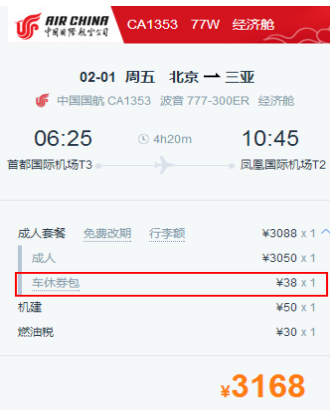 在携程旅行网上,体验人员发现搜索结果中有两种预订选项供消费者选择,置顶的一种选项为“+ ¥38(抵130车休券包)”,点击进去38元服务费会自动计入总价(如下图)。